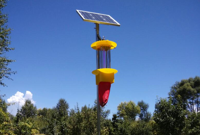 太陽能殺蟲燈是利用太陽能電池板作為用電來源,其將白天太陽能發(fā)的電貯存起來,晚上放電給殺蟲燈具,引誘害蟲撲向燈的光源,光源外配置高壓擊殺網(wǎng),殺死害蟲,使害蟲落入專用的接蟲袋內(nèi),達到滅殺害蟲的目的。